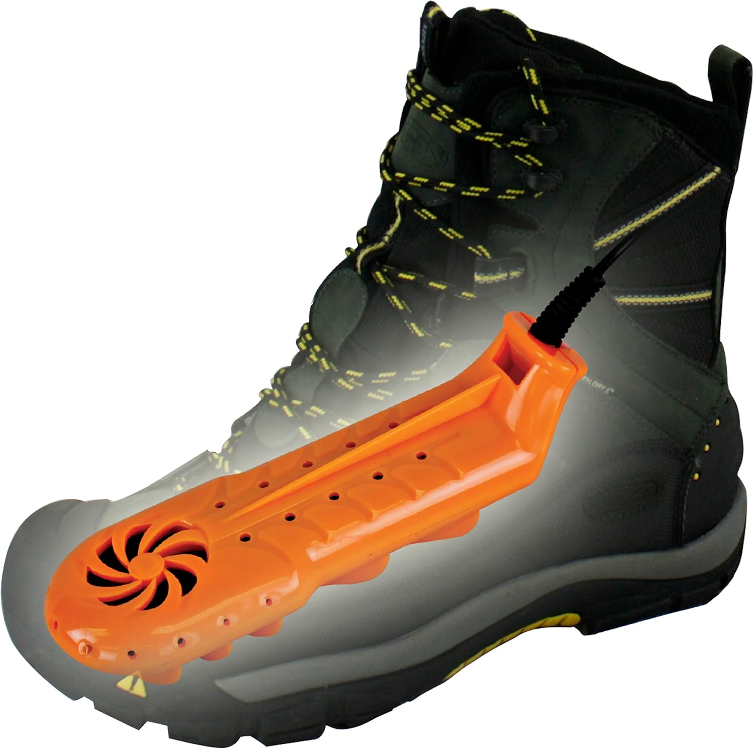 - Hybrid forced air and convection system heats to 99-degrees to dry footwear in less time than it takes most other portable dryers